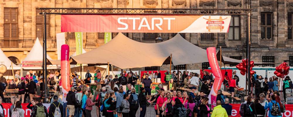 De combinatie van de gezelligheid onderweg met versierde straten, uitgebreide verzorgingsposten en swingende muziek, het kunnen wandelen voor een goed doel én de bijzondere startlocatie van de drie langste afstanden op de Dam in Amsterdam, maakt de Pink Ribbon Dam tot Dam Wandeltocht een van de grootste wandelevenementen van ons land.